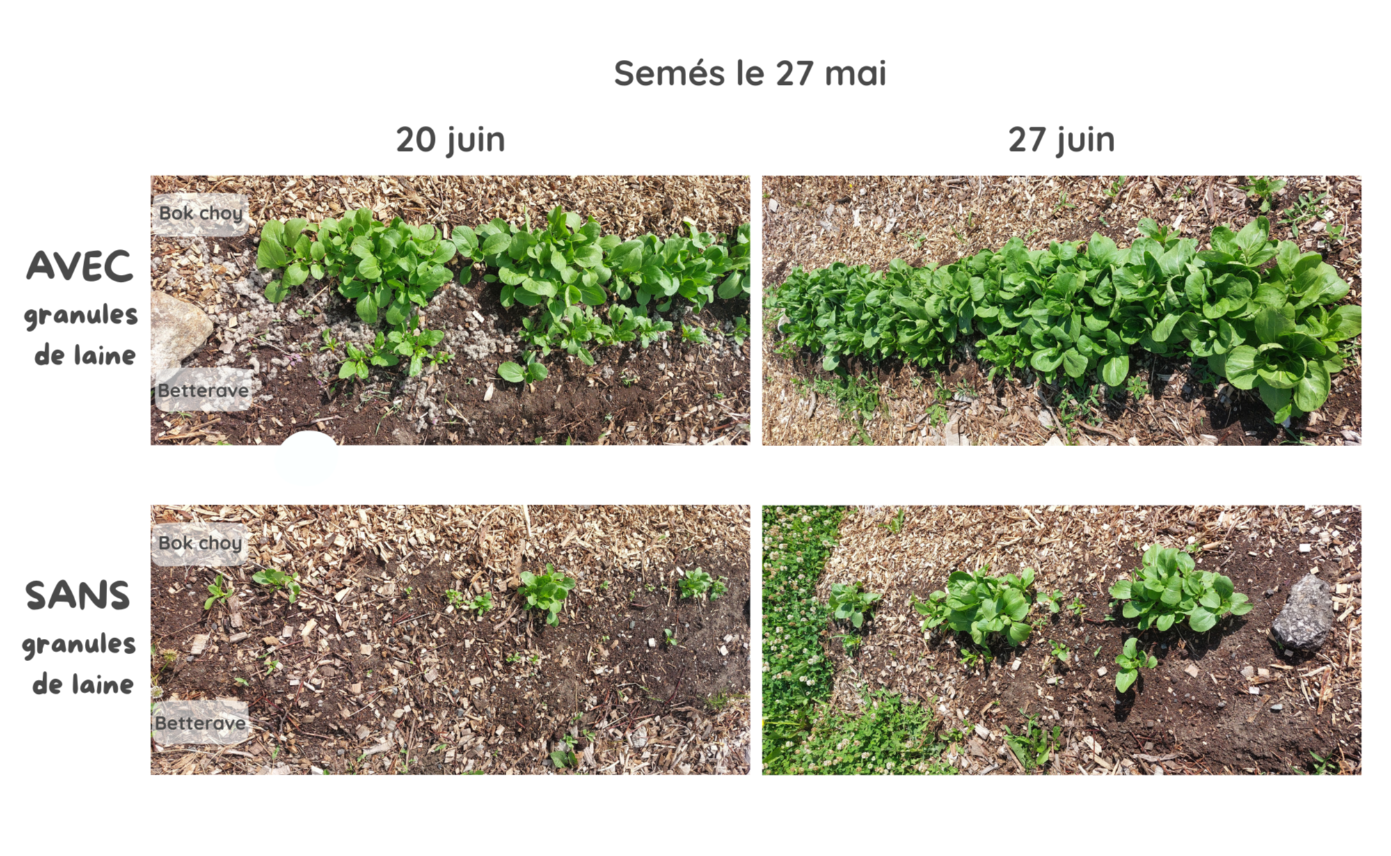 Semis de garance, SANS et AVEC granules de laine