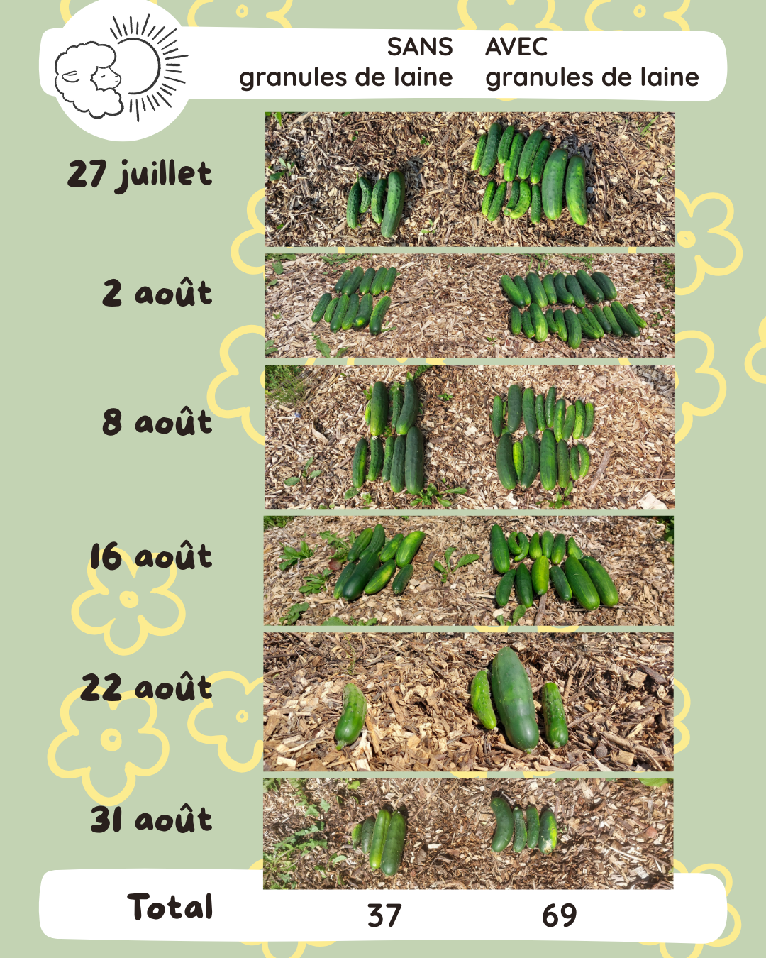 Trèfle blanc, SANS et AVEC granules de laine